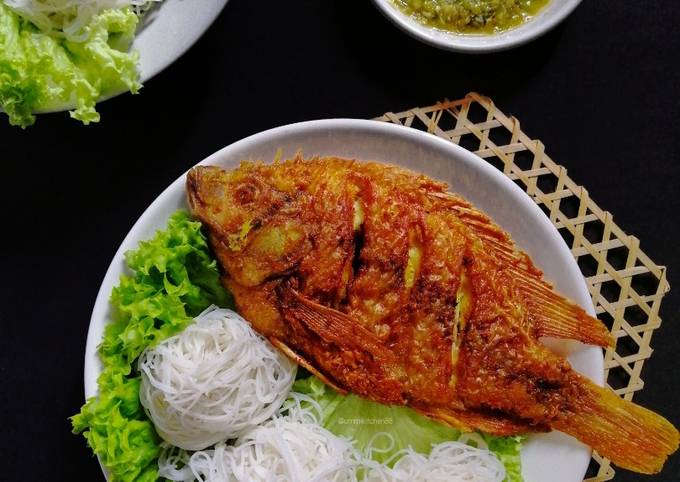 Resepi Lengkap Miang Pla Pao Tilapia Lettuce Wrap With Thai Green Seafood Dipping Sauce Nam Jim Youtube